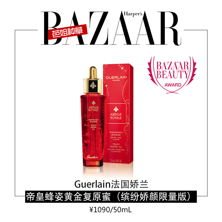 专为中国新年量身定制帝皇蜂姿黄金复原蜜缤纷娇颜限量版,一改往日金黄色透明瓶身,换成极具中国风的红色外壳,瓶中的“黄金微粒”依旧肉眼可见,精华的修护力量、蜜的滋润和乳液的轻盈在其中巧妙结合,上脸能迅速为肌肤吸收,肌肤娇嫩幼滑如新生。