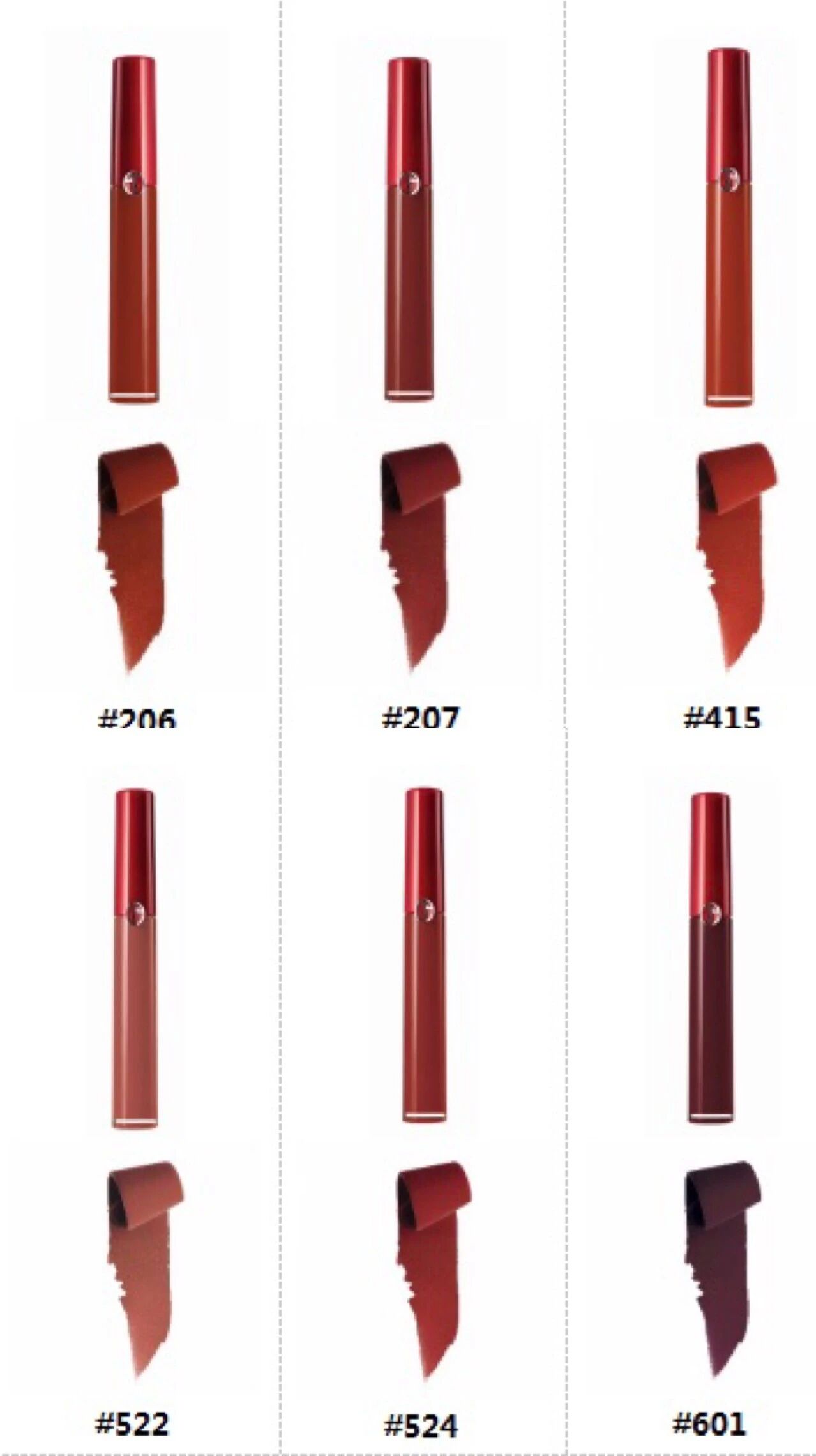 但没抢到#206的小伙伴们也不要失望,因为阿玛尼红管秋冬系列还有很多颜色值得你剁手!全新推出的6款颜色,都是自然红棕色调。由浅入深,全面覆盖各种肤色。