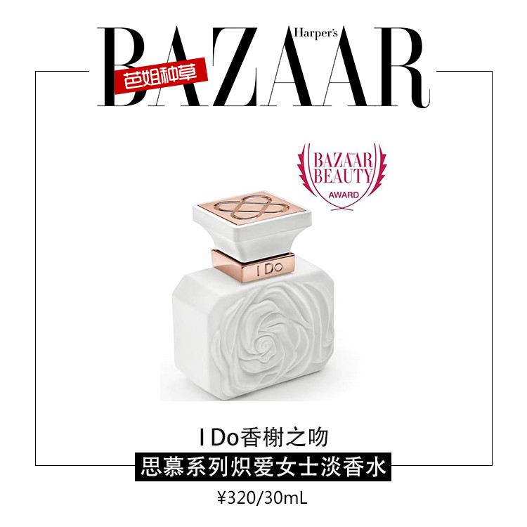当标志性的玫瑰花融入香水瓶身设计,白色磨砂感外壳摸上去分量感十足,只想说一个词:高级!当把I Do香榭之吻这款香水喷洒在身上,我仿佛深陷热恋的如梦时刻,在玫瑰花园和我的心上人见面,神秘而魅惑的尾调,更让人不断想探究这浪漫甜蜜的恋爱密境。
