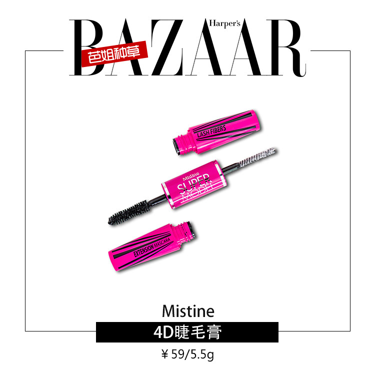 Mistin4D睫毛膏有两种睫毛纤维,一边白色纤维可以附着在睫毛上,让睫毛更显纤长,一边黑色纤维涂抹在睫毛上面,让睫毛更加浓黑,简直就是睫毛膏中的平价战斗机。