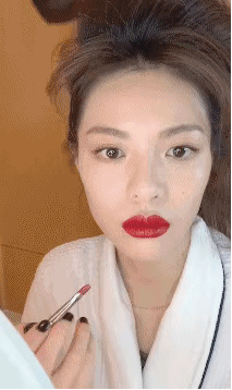 另外芭姐还发现,钟楚曦特别喜欢涂满全唇的画法,先用唇膏涂满嘴唇,勾勒出大致线条,然后再用唇刷晕染细节部分,尤其是唇峰不能画得太尖,需要自然地往斜下方拉,整个唇妆能够更柔和。