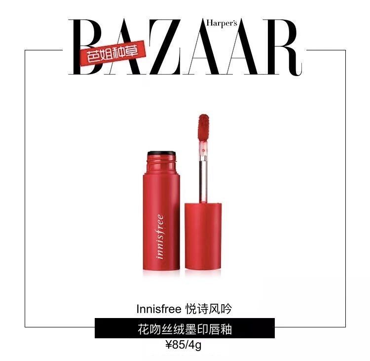 悦诗风吟的这款花吻丝绒墨印唇釉特别适合秋冬季节,质地润润的不会拔干,呈现出的却是丝绒哑光质地,搭配秋冬的毛衣和外套真的美到不行。