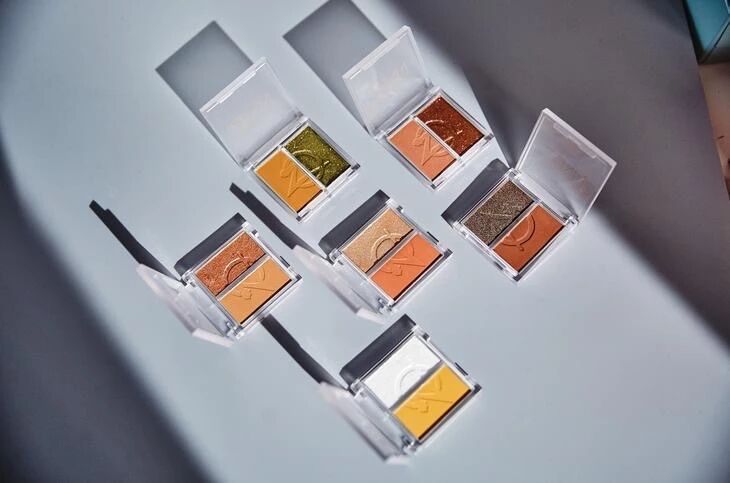 姜黄色的这块特别适合冬季使用,淡淡地打个底,整个人都变得温暖柔软起来,用浅珠光色稍稍提亮再搭上一条眼线,日常妆容就足够了。