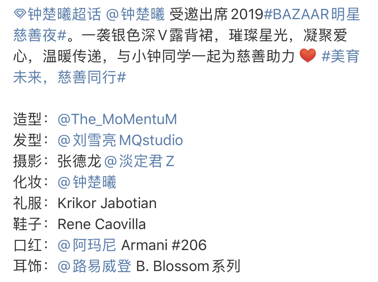 仗着肤白貌美,钟楚曦各类颜色的唇膏都能完美消化,唯一要做的就是根据当天搭配选择合适的颜色和风格。