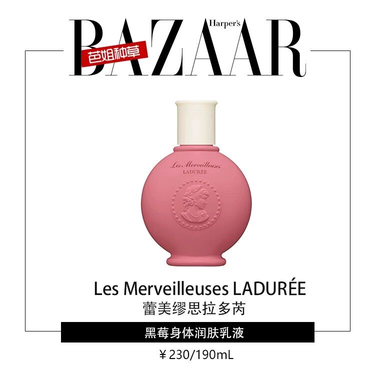 LADURÉE 这款黑莓身体润肤乳液,拥有黑莓酸甜的果香,还混合着玫瑰和茉莉的高贵花香,让芭姐肌肤和心灵都得到了滋润。