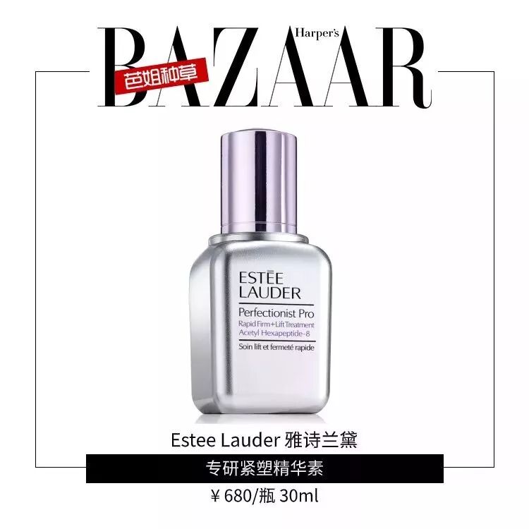 雅诗兰黛专研紧塑精华素,富含高浓度乙酰基六肽-8复合物,可以迅速渗透并促进肌肤胶原蛋白生成,从而使全脸轮廓紧致上扬。它不仅可以淡化法令纹和皱纹,也会令肤质变得细腻通透。这款精华的质地清爽易吸收,非常适合年轻肌肤使用。