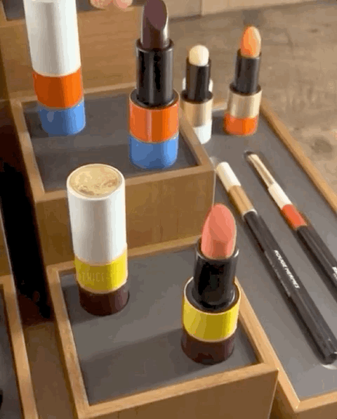 可组装的拼色外壳材质简约又高级,系列还包含了唇刷、润唇膏等产品...