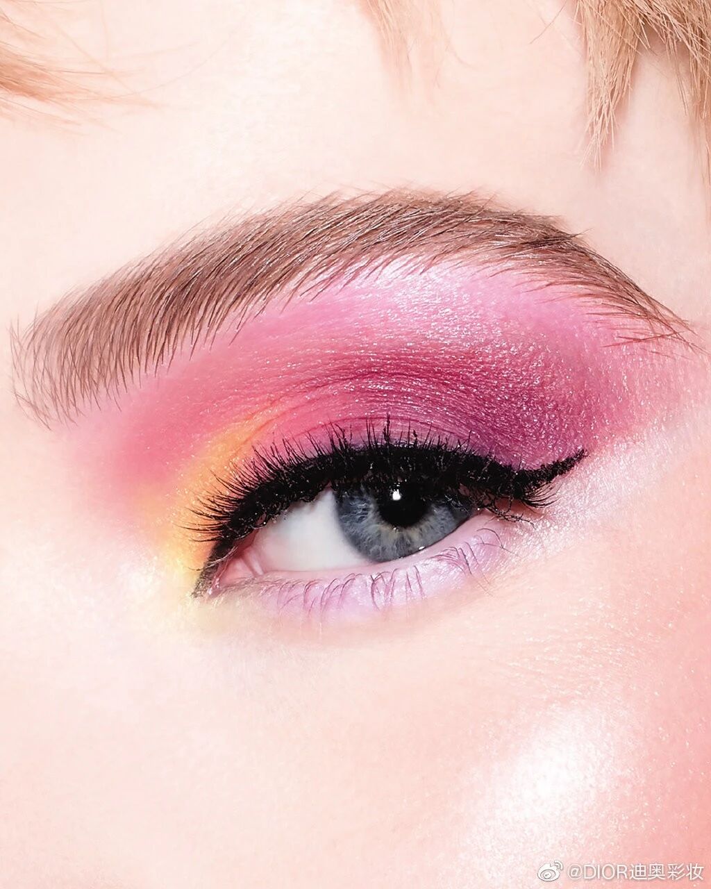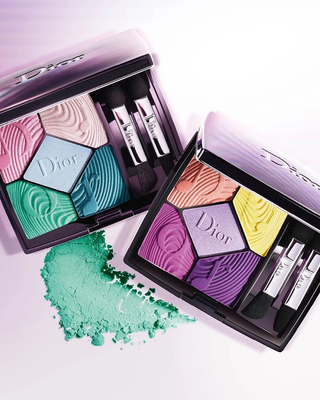 在这次推出的两款五色眼影盘中,DIOR又捡起了玩色技能挑战起碰撞性配色,黄色+紫色,蓝绿色+粉色,让人眼前一亮。