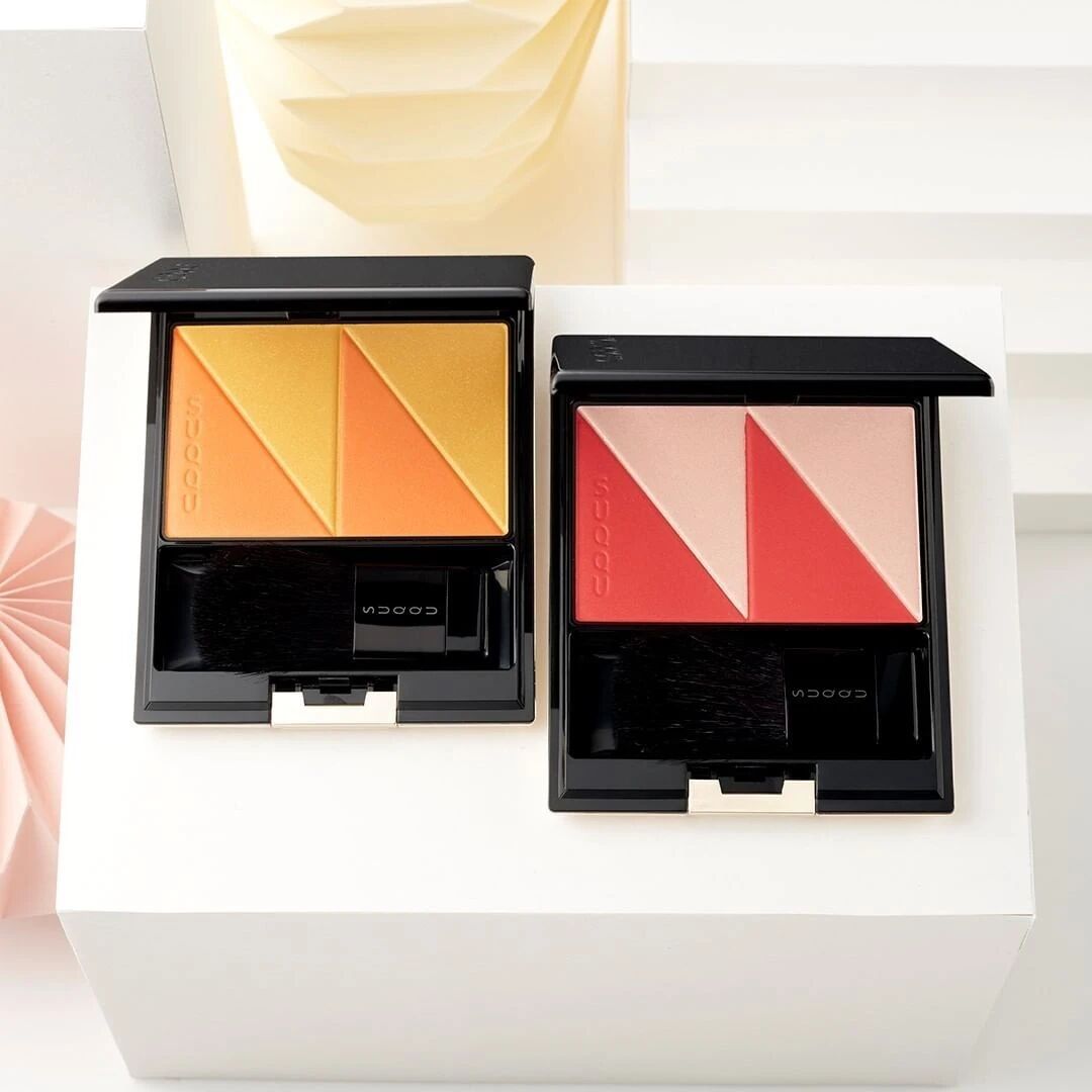 相对应的,同系列两款腮红也选择了红色调和橘色调,虽然配色都比较日常,但添加了折纸概念设计的压盘让它们看起来倒是更加特别了~
