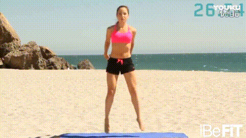 Step2: 双手上举,向上跳跃,利用腰部肌肉,来保持身体平衡。