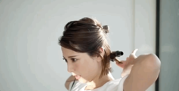 从最下层的发尾开始卷出你想要的卷发形状,一般短发来说可以卷一个外翻的卷。