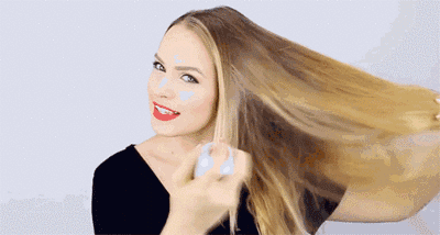 首先,把产品挤在双手接着以抓的方式向头发上涂抹。
