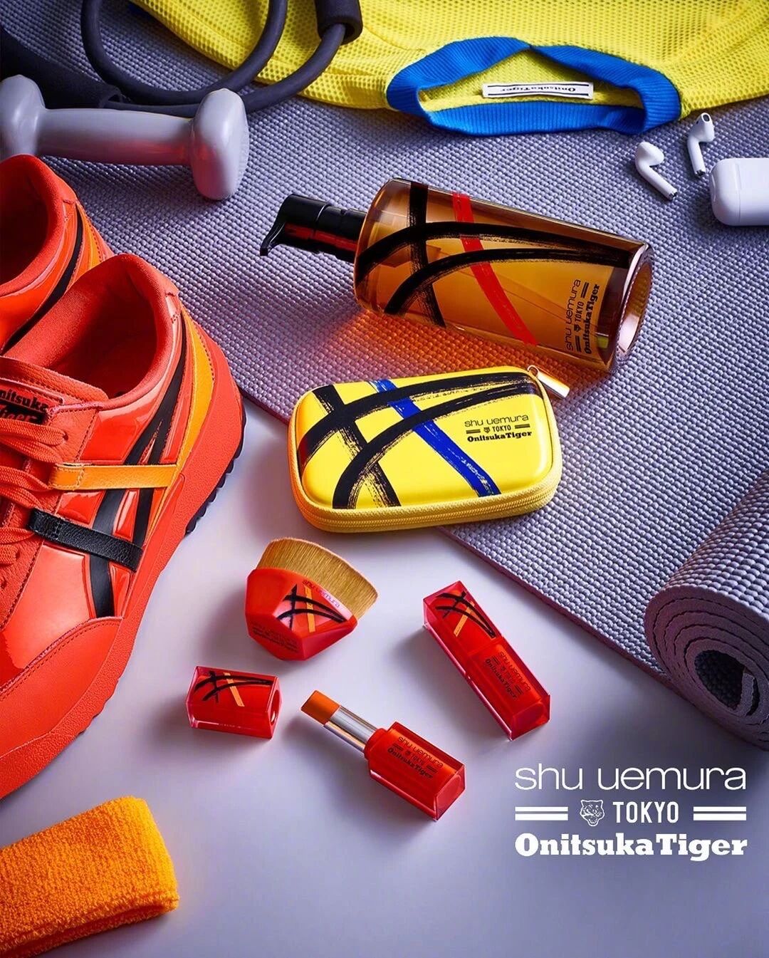 shu uemura身体力行地诠释了什么叫“万物皆可联名”,将鬼冢虎家最经典的配色放在了自家的明星单品上,运动风的包装别具一格。