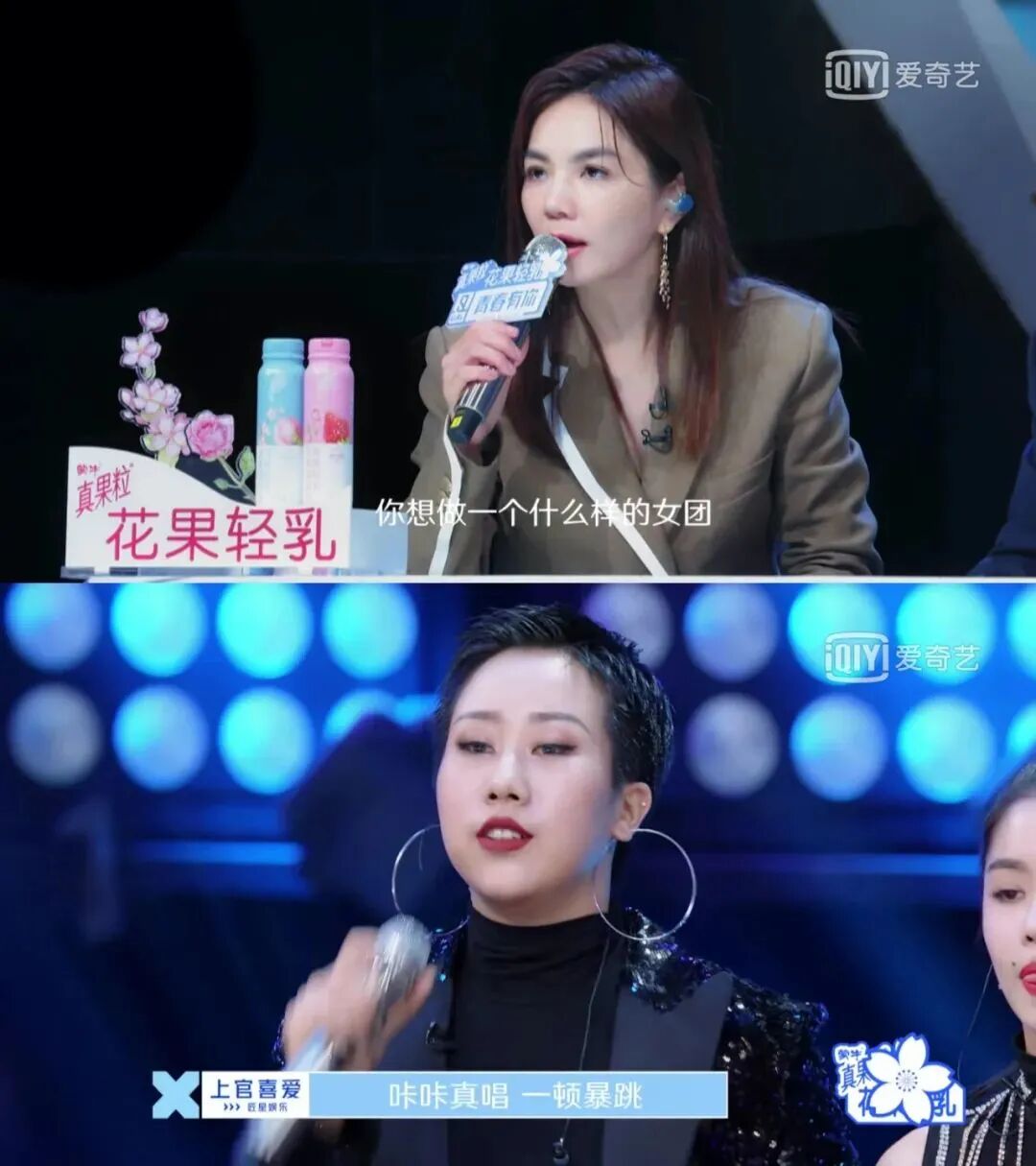 上台前她就对着镜头说:“我们等了四年,别让我逮到舞台,逮到的话我就会把它咬碎。”表演结束后,在被问到她心目中女团的标准时,上官喜爱的回答也相当真性情:“咔咔真唱,一顿暴跳”。我们就这样被这个长相不甜美、话语之中还带点狠、有着强烈个人色彩的女孩圈粉了。