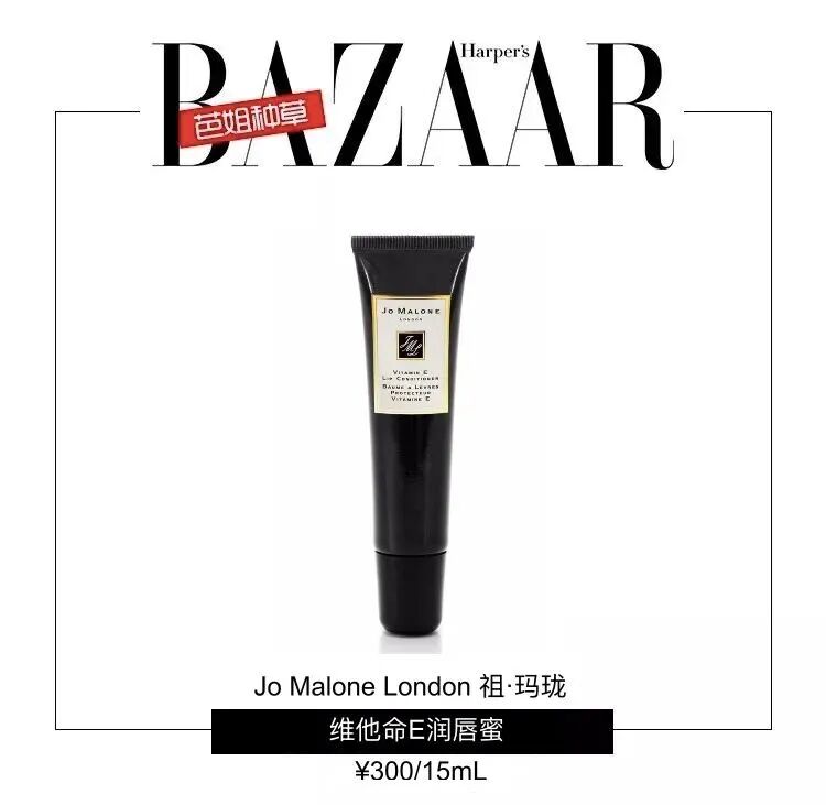 担心哑光唇膏在嘴上时间久了会干会显唇纹,别忘了在每晚睡前厚涂一层润唇膏,给双唇充分的滋养,能有效改善嘴唇干燥唇纹深的现象。吉克隽逸最爱的就是这款Jo Malone的维他命E润唇膏。