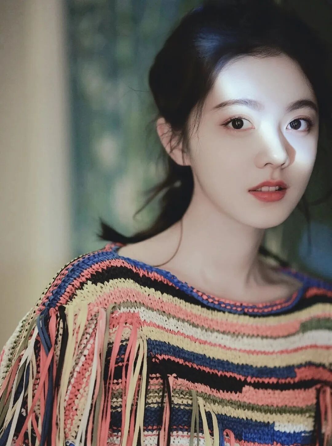 赵今麦的这一款眉毛是比较自然的眉形,而且有明显的月牙形弧度,这让五官整体看起来比较柔和,对于脸型修饰效果也好一点。对于圆脸的女生来说,稍微上挑一点的眉型,能够让比例看起来更加协调。