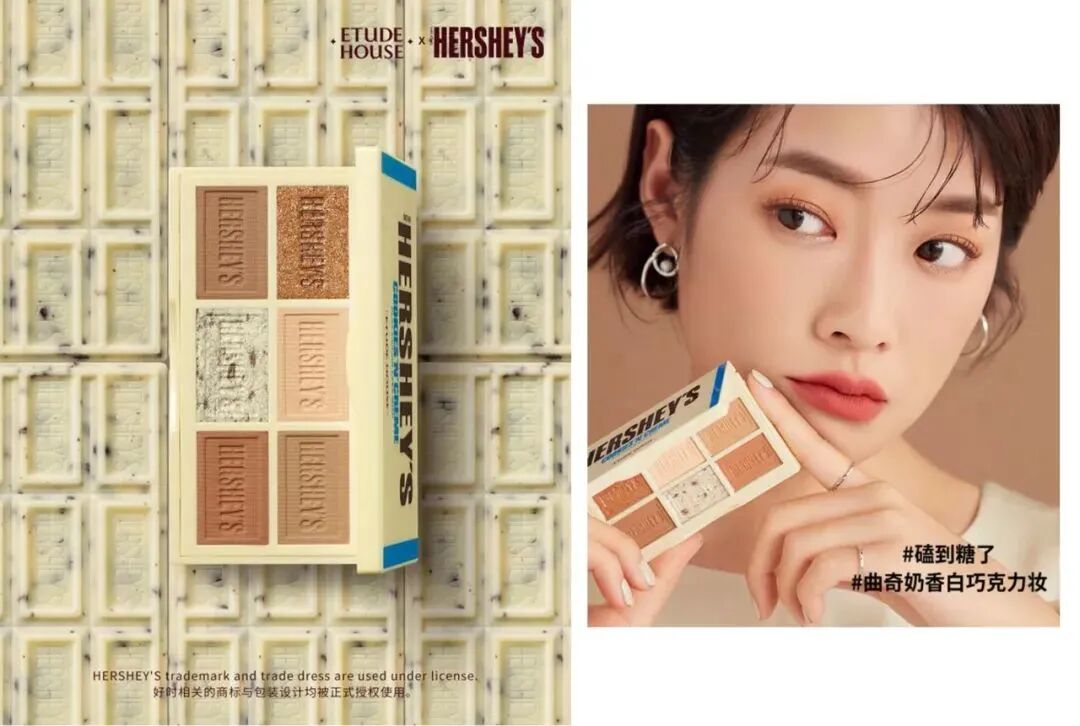 两种眼影盘分别对应了好时巧克力的两种包装,一个牛奶巧克力盘一个曲奇奶香白巧克力盘,配色也是两种风格。