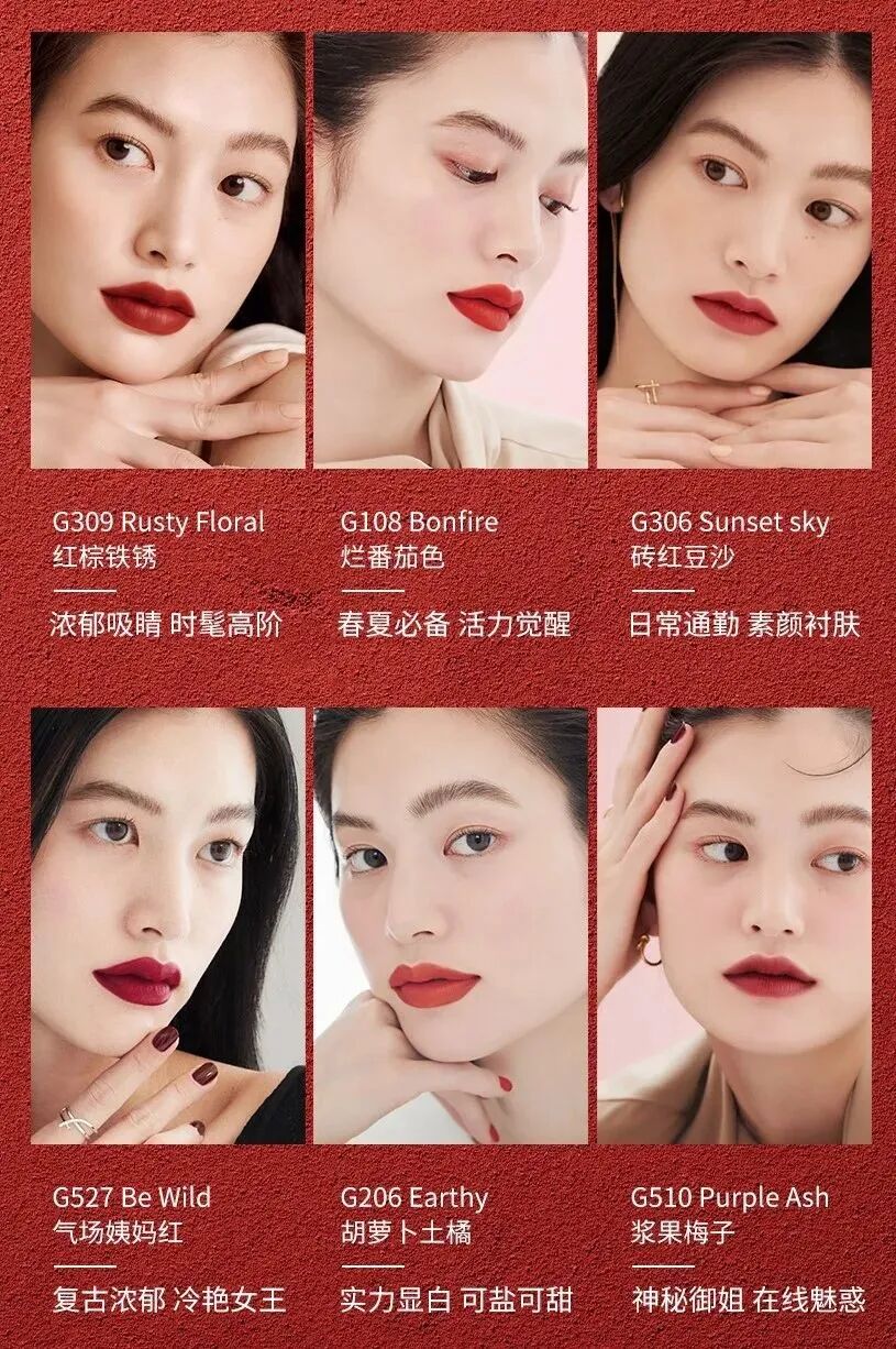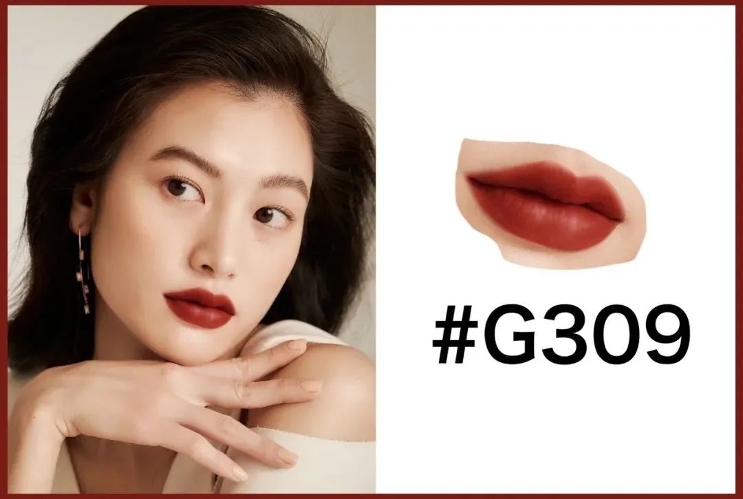 芭姐推荐给大家这款G309色号,红棕铁锈红港风妆容的必备色。搭配淡妆就很有女人味,日常上班、出门拍照等选它准没错呢!