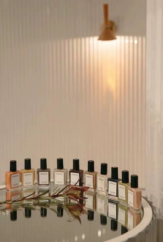 和其他品牌不同的是,J.Hannah本身是做性冷淡风的首饰品牌,设计师觉得市面上的指甲油色彩都不足以匹配品牌的珠宝,所以开始研发,自己出品!
