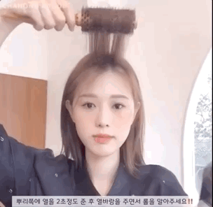 Step 1 :拉起两边的刘海,搭配卷梳和吹风机给发根出吹出蓬度。