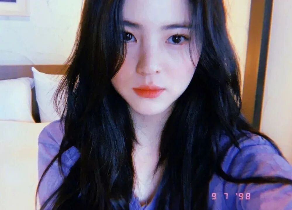 肤色偏白、且是冷调白的韩素希,染偏冷偏蓝的发色真的太有味道了。