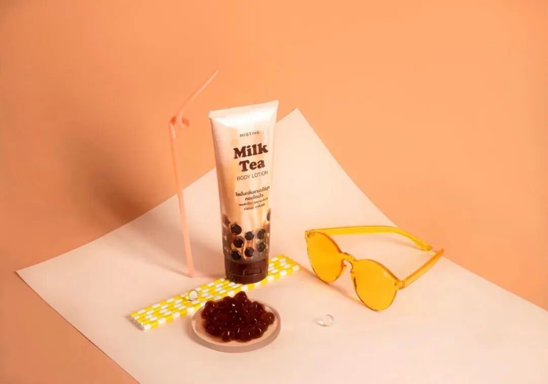 泰国化妆品牌mistine推出珍珠奶茶身体乳,轻松俘获奶茶少女们的芳心。包装模仿珍珠奶茶外观,尤其是底部的珍珠图案,像极了一杯黑糖波波奶茶。身体乳更是拥有香甜浓郁的奶茶香味,留香持久一整天。