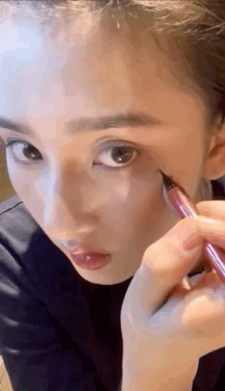 在眼尾后延伸出的紫色线条上再叠加原本的黑色眼线,虽然几乎没有眼影的修饰,但还是立马让整个眼妆精致了起来~