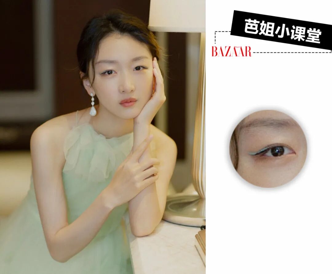 而出席活动搭配绿色的礼服,冬叔则换上了同色系的薄荷绿眼线。同样的画法,但淡淡的薄荷色却显得她更加温柔,这样让妆容和整体风格更统一的小细节真的非常巧妙了。
