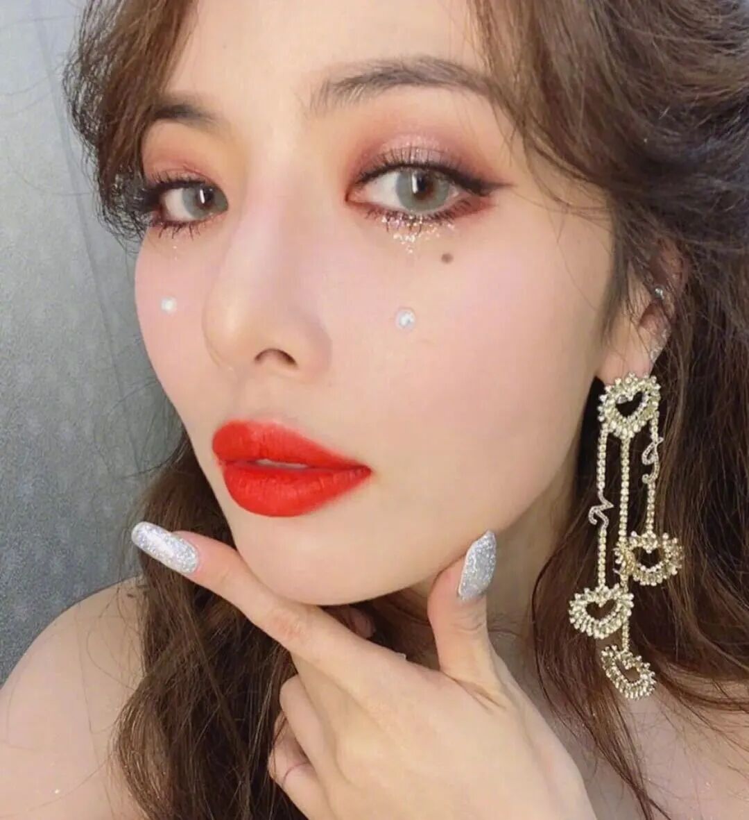 而比起在眼下后侧让人看起来更加妩媚的泪痣,眼下双泪痣的画法则更加能凸显出个性大胆的感觉。