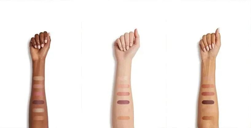 乍一看眼影盘中的配色你可能还有点犹豫,不知道该怎么应用这些颜色。你可以再来看看手臂上的试色,大地色、玫瑰色都分别有珠光版和哑光版搭配起来并不费力。其中珠光色偏多,整体颜色都很“闪”,化日常妆就选亮色点缀一下,化舞台妆或者参加party的时候,可多个珠光色叠加。
