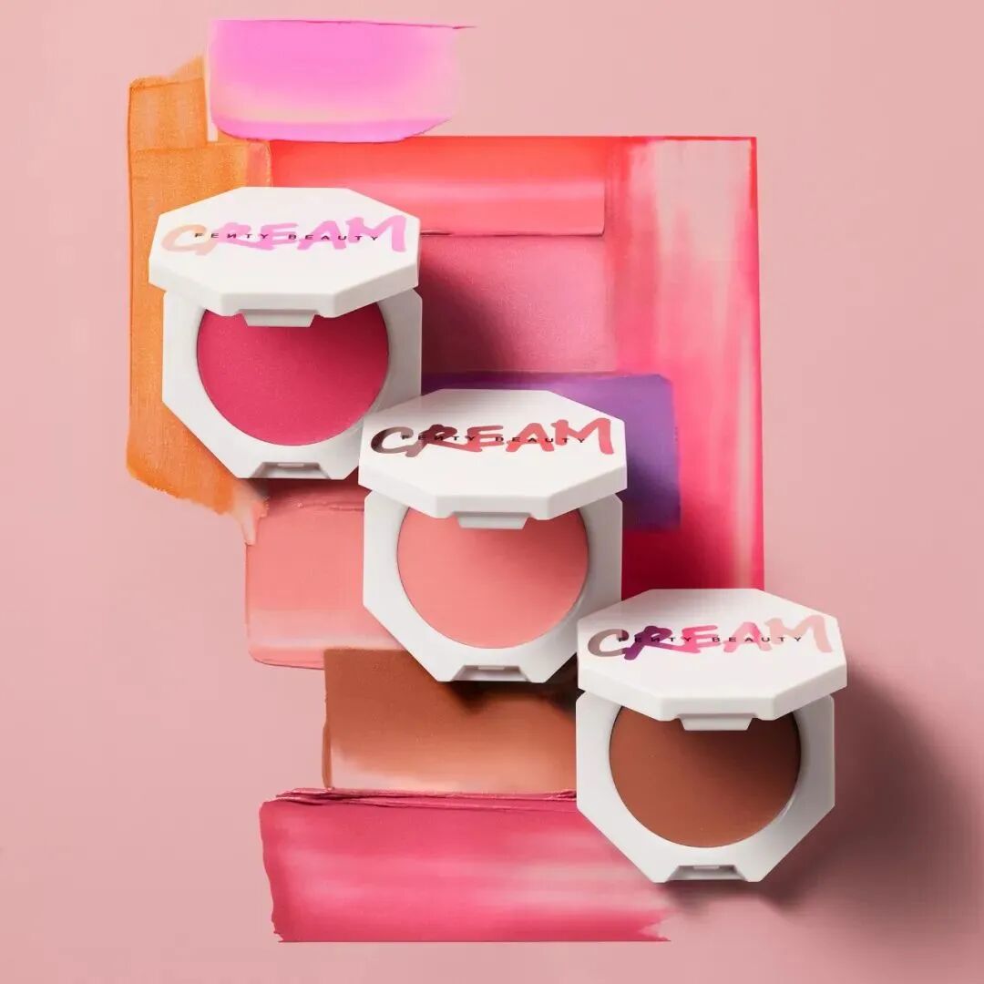 今年特别流行膏状腮红,也许是因为要戴口罩的原因,粉状腮红容易被蹭掉,而膏状腮红因其独特的质地,更容易和面部融为一体,不仅防剐蹭又更自然。这不,趁着热乎劲儿,Fenty Beauty也推出了全新的腮红膏和古铜膏。