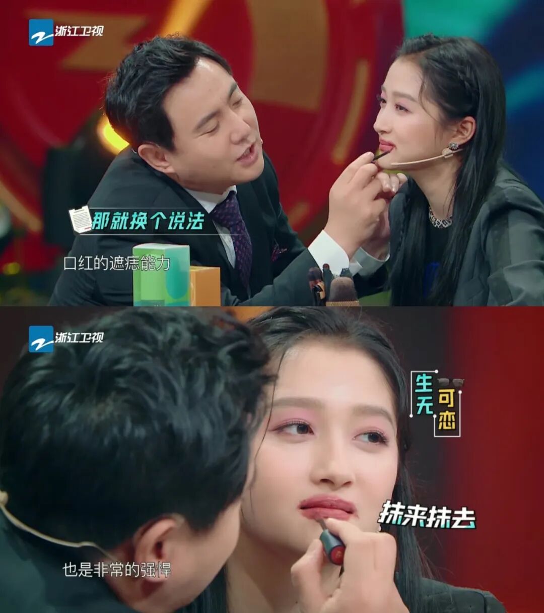 涂的同时还不忘夸赞口红的遮痣能力,看完默默心疼秒变香肠嘴的晓彤十秒钟...