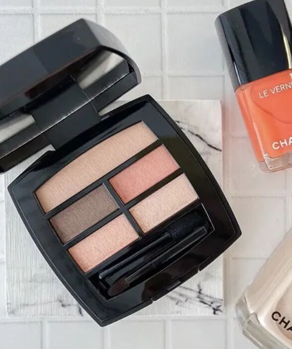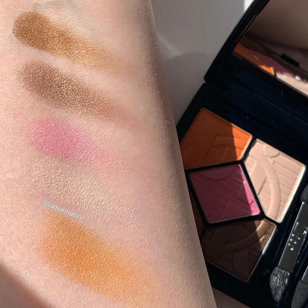 内容也十分丰富,香槟蜜桃色调的五色眼影盘实用性满分,质地亲肤好上色,细腻的珠光和手上的其他盘也能融合得不错。