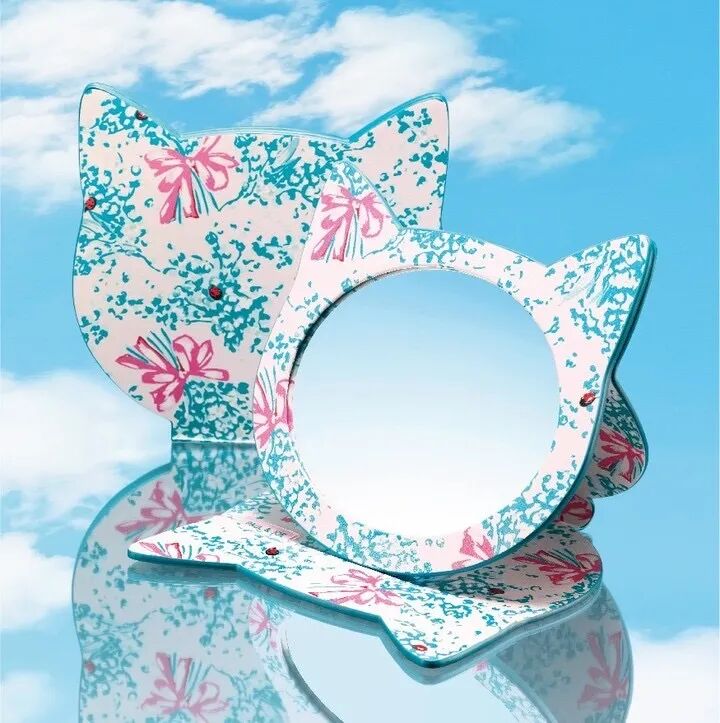 还有防晒哑光粉饼和猫咪化妆镜,清凉低饱和的碎花不会发腻觉得俗气,摆在桌上来增加精致感也很可!