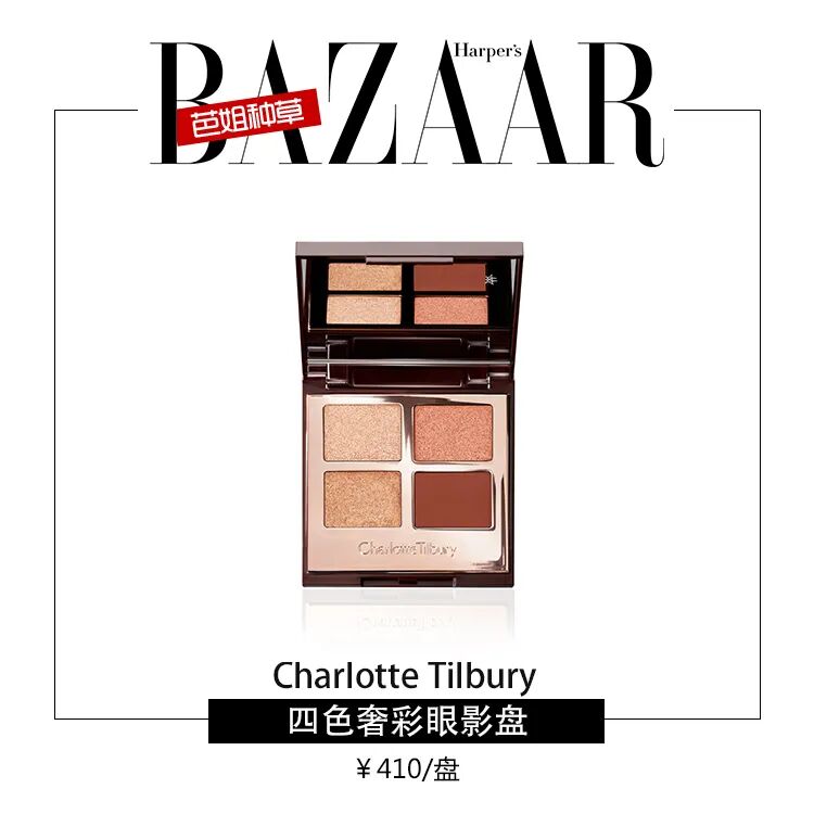 CT 这款金铜色号的眼影盘简直就是将闪耀进行到底,以闪耀香槟金打底,叠加金属玫瑰铜,晕染哑光黄褐色,加上卧蚕处的点睛之笔璀璨暖光金,饱和度很高,轻抹上眼散发出撩人的红褐色火花。