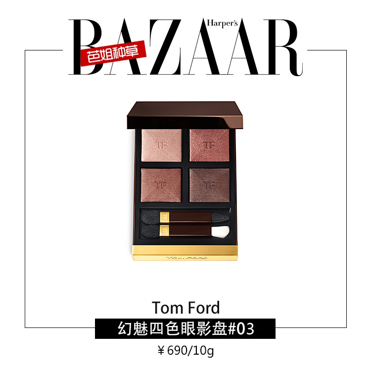 Tom Ford这款眼影盘玫瑰红霞色号,自带两把双头刷,内置小镜子,方便外出携带,略带珠光细闪,棕红色的基调恰到好处地刷出浓郁的复古风。
