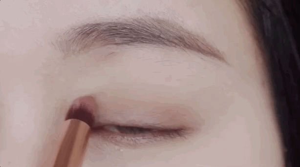 而打造这款妆容的眼妆时,我们可以直接先用蜜桃色来做打底或是在打底后用它大范围的晕染在眼窝处,然后顺带到下眼尾的部位。