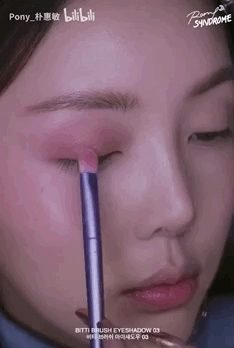 选取一块柔和的蜜桃色腮红,然后要大面积的扫在眼下,注意一定要像泫雅一样从颧骨一直延伸到太阳穴的部分~