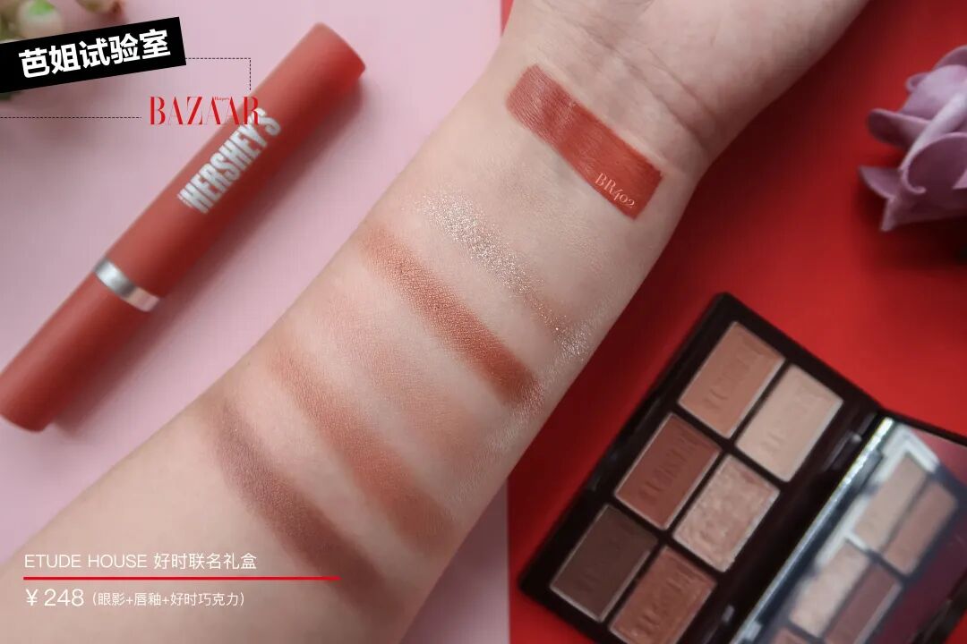 ETUDE HOUSE和HERSHEY'S 联名的520礼盒,搭配的两款眼影都是大地色系的配色,不同的深浅也能满足多种妆感需求。