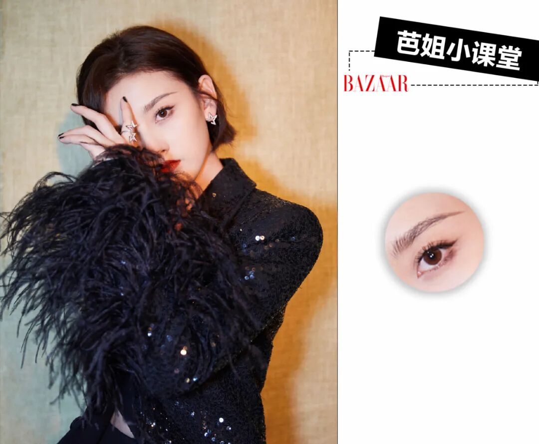 祖儿的这款电眼妆,最主要的要点就是眼睑下至的画法以及上眼线上扬小鱼尾式的处理,恰到好处的留白既能改变眼型还能放大双眼。