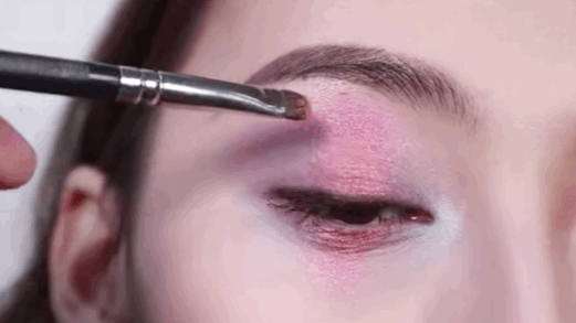4. 再用带偏光的粉色涂抹在上下眼中部分,并将边缘晕染自然;