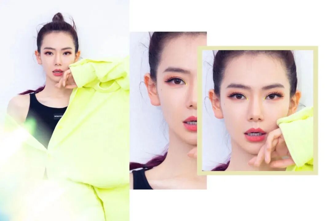 如果不能接受大面积夸张颜色,也可以向戚薇学习,巧妙地用一笔荧光黄点缀在眼头,便点亮了整个妆容,而且灵动又个性。