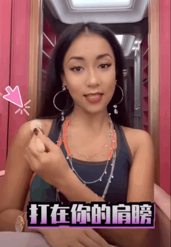 身穿皮质抹胸的机车女孩吉克隽逸,涂起身体高光也太顺手了吧!对她来说,她的闪光时刻就是走在哪里都全身亮闪闪,只要穿露肤的衣服,就会下狠手往身上“糊”高光。重点涂在肩膀和锁骨处,立马骨干起来;扫在腿上,显得修长又美丽。
