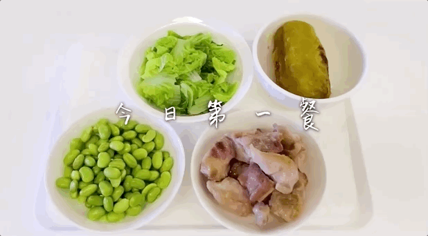 她的第一餐通常是水煮菜+不另加油的煎鸡肉/牛肉,主食则用番薯代替,来增加淀粉碳水的摄入;