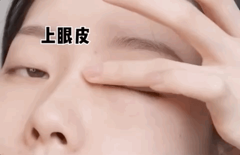 STEP 2:再从上眼皮眼头按摩到眼尾,起到紧致眼皮的作用;