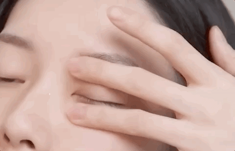 STEP 4:如果上眼皮比较肿,再做个单独处理,并拢两只手的中指和无名指,交替向上作提拉按摩,赶走水肿~