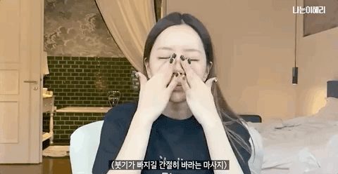 水肿比较严重的同学需要再加一步,双手握拳,用中指的关节从额头向外下刮到脖子的淋巴,到锁骨处结束,睡前做几次对预防第二天的浮肿也很有帮助哦!