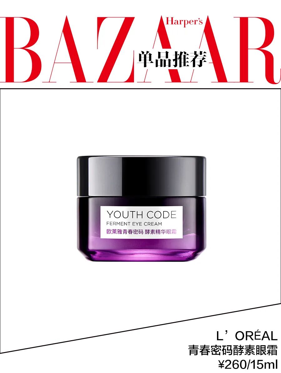 芭姐推荐:L’ORÉAL 酵素眼霜里不仅有消除浮肿的咖啡因,还有淡褪黑眼圈的独家成分黑洛西Haloxyl,以及促进胶原蛋白产生的酵素复合精华,奶冻般的丰润质地触肤即化,敏感肌也适用哦~