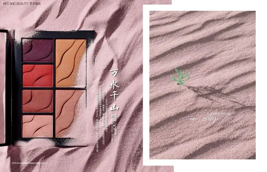 这次地理和彩妆大片的效果令人惊艳。产品摄影师拍摄的彩妆质感精美,而且在设计和编辑的安排下,和自然相片浑然天成的融合在了一起,体现了一种普世之美。