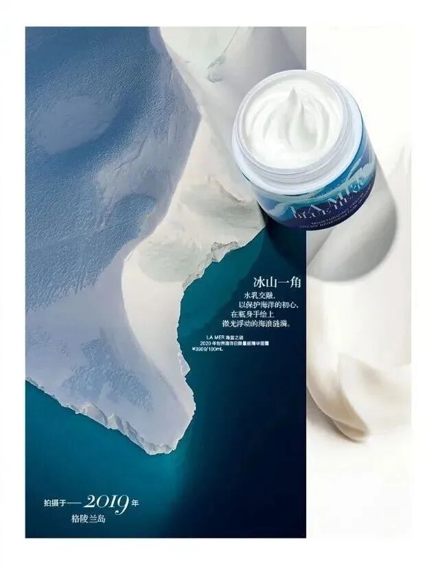 水乳交融,以保护海洋的初心,在瓶身手绘上微光浮动的海浪涟漪,与2019年格陵兰岛的风光,遥相呼应。